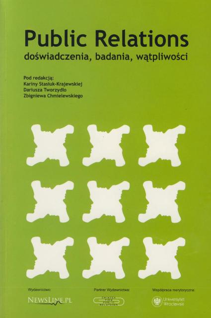 Nurt krytyczny w teorii public relations ; Komunikowanie jest najważniejsze... w sytuacjach wielkich kataklizmów, katastrof, krachów i skandali, aktów terrorystycznych ; Wizerunek - wybrane zagadnienia ; Wizerunkowi aspekt shockvertisingu ; Metody pomiaru rezultatów działań public relationse ; Barometr komunikacji - skuteczne narzędzie pomiaru efektów public relations ; Efektywność a efektywność wizerunku miasta ; Znaczenie komunikowania perswazyjnego w polityce ; Determinanty skutecznych kampanii perswazyjnych na przykładzie kampanii wyborczych ; Specyfika i uwarunkowania lobbingu organizacji pozarządowych ; Zarządzanie relacjami z otoczeniem zewnętrznym na przykładzie uczelni ; Wielowymiarowy wizerunek uczelni wyższej w Polsce - refleksje badawcze ; Budowanie wizerunku wyższych uczelni w kontekście media relations (na przykładzie Wyższej Szkoły Kultury Społecznej i Medialnej w Toruniu) ; Czy public relations może się nauczyć? ; Słowo energetyka. Prasa korporacyjna branży energetycznej ; Groźby czy prośby? Wybrane internetowe działania komunikacyjne firm windykacyjnych ; Świadomość stosowania narzędzi public relations w przedsiębiorstwie ; Wykorzystanie modeli Jamesa Gruninga i Todda Hunta w działalności PR.