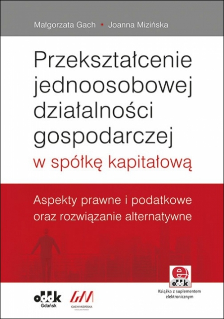 Działalność gospodarczą można prowadzić w różnych formach prawnych. Znaczna część polskich przedsiębiorców decyduje się na prowadzenie jednoosobowej działalności gospodarczej. Często jednak różnego rodzaju okoliczności uzasadniają potrzebę zmiany tej formy prowadzenia działalności na spółkę kapitałową. Następuje wówczas proces przekształcenia działalności gospodarczej przedsiębiorcy w jednoosobową spółkę z o.o. czy też spółkę akcyjną. Podstawy i zasady tego przekształcenia reguluje Kodeks spółek handlowych. Czy każdy przedsiębiorca może podlegać przekształceniu? Jaka jest procedura przekształcenia? Jakie są korzyści takiego przekształcenia? Czy spółka przekształcona staje się podmiotem wszystkich praw i obowiązków przedsiębiorcy przekształcanego? Jakie są podatkowe skutki przekształcenia? Autorki odpowiadają na te i inne pytania związane z przekształceniem, opisują jego poszczególne etapy, których prawidłowe przejście skutkuje zatwierdzeniem przekształcenia i rejestracją spółki przez sąd. W książce omówione zostało również alternatywne rozwiązanie - wniesienie (aport) przedsiębiorstwa osoby fizycznej (przedsiębiorcy jednoosobowego) jako wkładu niepieniężnego do spółki kapitałowej - wraz ze wskazaniem procedury wniesienia, skutków prawnych i podatkowych. Integralną częścią książki jest suplement elektroniczny zawierający wzory niezbędnych do przekształcenia działalności w spółkę dokumentów w edytowalnej formie: Planu przekształcenia, Oświadczenia o przekształceniu, Aktu założycielskiego spółki (umowy spółki) oraz formularzy KRS. Plik suplementu można pobrać przez Internet - instrukcja w książce. Zainstalowanie suplementu wymaga systemu operacyjnego Windows. [ODDK, 2019]