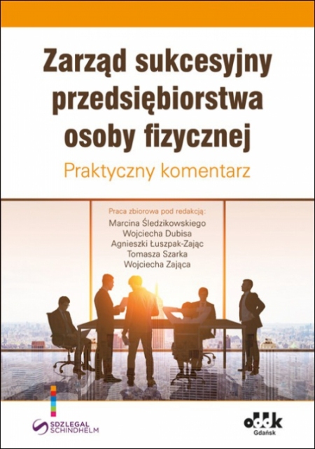 1. PRZEDSIĘBIORSTWO W SPADKU: 1.1. Wprowadzenie, 1.2. Pojęcie przedsiębiorstwa w spadku - definicja legalna, 1.3. Firma przedsiębiorstwa w spadku, 1.4. Wielość przedsiębiorstw jednego przedsiębiorcy a przedsiębiorstwo w spadku, 1.5. Wykaz inwentarza przedsiębiorstwa w spadku, 1.6. Sytuacja prawna małżonka zmarłego przedsiębiorcy, posiadającego udział w przedsiębiorstwie, 1.7. Przedsiębiorstwo jako przedmiot wspólnego prawa - pozostałe przypadki, 1.8. Sytuacja prawna przedsiębiorstwa w spadku, 1.9. Właściciele przedsiębiorstwa w spadku, 1.10. Uprawnienia przysługujące właścicielom przedsiębiorstwa w spadku i ich stosunek względem zarządcy sukcesyjnego ; 2. ISTOTA ZARZĄDU SUKCESYJNEGO: 2.1. Wprowadzenie, 2.2. Ustanowienie zarządu sukcesyjnego, 2.3. Zasady dotyczące wykonywania zarządu sukcesyjnego. Prowadzenie przedsiębiorstwa w spadku, 2.4. Odpowiedzialność za zobowiązania przedsiębiorstwa w spadku. Odpowiedzialność zarządcy sukcesyjnego, 2.5. Śmierć wspólnika spółki cywilnej a zarząd sukcesyjny, 2.6. Odwołanie zarządcy sukcesyjnego i inne zdarzenia powodujące utratę przez niego tego statusu, 2.7. Wygaśnięcie zarządu sukcesyjnego ; 3. ZARZĄDCA SUKCESYJNY - KWESTIE PROCEDURALNE ; 4. KONTYNUACJA STOSUNKÓW UMOWNYCH Z ZAKRESU PRAWA CYWILNEGO ; 5. KONTYNUACJA STOSUNKÓW PRACOWNICZYCH: 5.1. Wprowadzenie, 5.2. Ustanowienie zarządu sukcesyjnego z chwilą śmierci pracodawcy, 5.3. Ustanowienie zarządu po śmierci pracodawcy, 5.4. Rozwiązanie umów o pracę na czas określony, 5.5. Okres usprawiedliwionej nieobecności w pracy, 5.6. Możliwość powrotu do pracy pracowników po ustanowieniu zarządu sukcesyjnego ; 6. POZYCJA MAŁŻONKA ZMARŁEGO PRZEDSIĘBIORCY: 6.1. Wprowadzenie, 6.2. Małżonek przedsiębiorcy właścicielem przedsiębiorstwa w spadku, 6.3. Zarząd przez małżonka przedsiębiorstwem w spadku do dnia ustanowienia zarządcy sukcesyjnego, 6.4. Uprawnienia małżonka po powołaniu zarządcy sukcesyjnego, 6.5. Stosowanie przepisów do pozostałych współwłaścicieli ; 7. INSTYTUCJA PROKURY DLA PRZEDSIĘBIORCY PROWADZĄCEGO JEDNOOSOBOWĄ DZIAŁALNOŚĆ GOSPODARCZĄ: 7.1. Wprowadzenie, 7.2. Powołanie prokurenta przez przedsiębiorcę będącego osobą fizyczną, 7.3. Zakres prokury udzielonej przez przedsiębiorcę będącego osobą fizyczną, 7.4. Rodzaje prokury. Prokura samoistna, łączna i oddziałowa, 7.5. Możliwość sprawowania zarządu sukcesyjnego przez prokurenta, 7.6. Zasady publikowania w CEIDG informacji o prokurentach, 7.7. Odwołanie. Wygaśnięcie prokury ; 8. ZARZĄD SUKCESYJNY A POSTĘPOWANIA UPADŁOŚCIOWE I RESTRUKTURYZACYJNE: 8.1. Wprowadzenie, 8.2. Zakaz ustanowienia zarządu sukcesyjnego po ogłoszeniu upadłości przedsiębiorcy, 8.3. Śmierć dłużnika w toku postępowania o ogłoszenie upadłości, 8.4. Termin oraz legitymacja do złożenia wniosku o ogłoszenie upadłości, 8.5. Obowiązek złożenia wniosku o ogłoszenie upadłości, 8.6. Podstawy ogłoszenia upadłości, 8.7. Skład masy upadłości i ogłoszenie upadłości w czasie zarządu sukcesyjnego, 8.8. Postępowanie restrukturyzacyjne ; 9. SUKCESJA STOSUNKÓW Z ZAKRESU PRAWA PODATKOWEGO: 9.1. Wprowadzenie, 9.2. Przedsiębiorstwo w spadku jako podmiot prawa podatkowego, 9.3. Status zarządcy sukcesyjnego na gruncie prawno-podatkowym, 9.4. Zasady sukcesji podatkowej, 9.5. Odpowiedzialność za zobowiązania podatkowe związane z działalnością przedsiębiorstwa w spadku, 9.6. Korzystanie z numeru NIP przez przedsiębiorstwo w spadku, 9.7. Obowiązki sprawozdawcze i rachunkowe przedsiębiorstwa w spadku, 9.8. Postępowania podatkowe w toku, 9.9. Sukcesja w podatku dochodowym od osób fizycznych, 9.10. Sukcesja w zryczałtowanym podatku dochodowym od osób fizycznych, 9.11. Kontynuacja rozliczeń przy ryczałcie od przychodów ewidencjonowanych, 9.12. Kontynuacja rozliczeń przy karcie podatkowej, 9.13. Sukcesja w podatku od towarów i usług, 9.14. Sukcesja w podatku akcyzowym, 9.15. Sukcesja w podatku od gier hazardowych, 9.16. Sukcesja w pozostałych podatkach, 9.17. Nowe zwolnienie w podatku od spadków i darowizn ; 10. SUKCESJA STOSUNKÓW ADMINISTRACYJNYCH: 10.1. Wprowadzenie, 10.2. Zakres wyłączeń, 10.3. Przesłanki zachowania bytu prawnego decyzji związanej z przedsiębiorstwem, 10.4. Promesa decyzji związanej z przedsiębiorstwem, 10.5. Wpis do rejestru działalności regulowanej, 10.6. Postępowania administracyjne po śmierci, 10.7. Postępowania sądowoadministracyjne po śmierci przedsiębiorcy, 10.8. Postępowanie egzekucyjne w administracji ; ANEKS: Ustawa o zarządzie sukcesyjnym przedsiębiorstwem osoby fizycznej, Wyciąg najważniejszych zmian dokonanych na mocy ustawy o zarządzie sukcesyjnym przedsiębiorstwa osoby fizycznej w innych aktach prawnych.