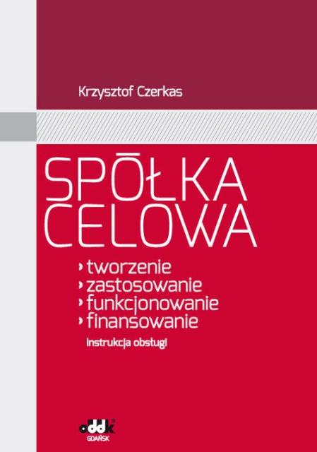 Spółka celowa : tworzenie, zastosowanie, funkcjonowanie, finansowanie : instrukcja obsługi / Krzysztof Czerkas. - Stan prawny na 30.06.2017. - Gdańsk : ODDK, 2017. - 364, [1] strona : ilustracje ; 24 cm.