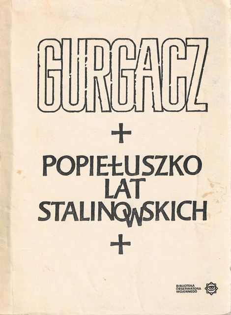 CZ. I. Ks. Władysław Gurgacz - Popiełuszko lat stalinowskich: 1. Skąd ten tytuł ; 2. Droga życiowa Władysława Gurgacza. Młode lata ; 3. Wojenne lata ; 4. Rok 1945 ; 5. Lata 1946-1947 ; 6. Historia Jana Matejaka ; 7. Z listów Gurgacza do Matyjaka ; 8. Druga do podziemia ; 9. Polska Podziemna Armia Niepodległościowa ; 10. Leśne życie ; 11. Według opowiadania Leona i Henryka ; 12. Zima w górach ; 13. Wisna 1949 roku ; 14. Nieudana akcja ; 15. Aresztowanie Gurgacza ; 16. Proces ; 17. Ostatnie słowo Gurgacza i wyrok ; 18. Ta dziwna cyfra "13" ; 19. Tragedia w Preszowie ; 20. Ostatni miesiąc ; 21. Epilog ; CZ. II. Wspólnicy jego losu: 22. Historia Michała Żaka czyli miłość Ojczyzny ; 23. Ks. Wojciech-Zygmunt - "Góral od Prehyby" ; 24. O. Józef Chromik ; 25. O. Stanisław Szymański, T.J. ; 26. Inni więzieni jezuici ; 27. Spis /niekompletny/ innych więzionych jezuitów.