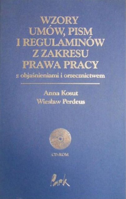 Wzory umów, pism i regulaminów z zakresu prawa pracy z objaśnieniami i orzecznictwem / Anna Kosut, Wiesław Perdeus. - Wydanie 2. - Bielsko-Biała : PPU Park, copyright 2003. - 393, [3] strony ; 24 cm + 1 dysk optyczny (CD-ROM).