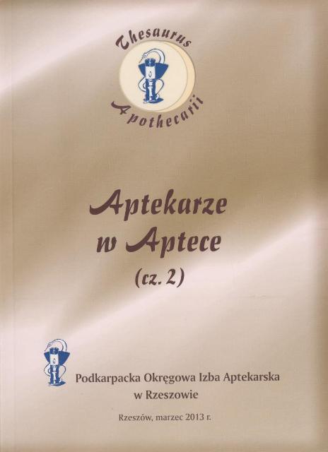 A tak się to zaczęło... / Lidia Maria Czyż ; Aptekarska rodzina Dańczaków w Sokołowie Małopolskim / Lidia Maria Czyż ; Przyczynek do dziejów Apteki w Dynowie / Lidia Maria Czyż ; Apteka "Pod Aniołem" / Bogdan Ziobro ; Historia aptek jarosławskich / Zbigniew Biliński ; Towarzystwo Aptekarzy Prowincjonalnych w Galicyi / Maciej Bilek.