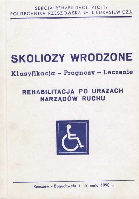 Skoliozy wrodzone - klasyfikacja i prognoza ; Ocena przebiegu i leczenia wrodzonych skrzywień kręgosłupa ; Wrodzone skrzywienia kręgosłupa - ocena materiału Wojewódzkiego Zespołu Rehabilitacyjnego w Świebodzinie ; Zachowanie się parametrów połączenia lędźwiowo-krzyżowego u dzieci ; Metody badawcze krzywizn kręgosłupa i postawy ciała u dzieci w wieku 7 lat ; Model reologiczny stawu biodrowego ; Kąt promontorium i Fergusona w przebiegu zmian zwyrodnieniowych bioder u osób z wadami wrodzonymi przejścia krzyżowo-lędźwiowego kręgosłupa ; Leczenie operacyjne stawu biodrowego u dzieci z mózgowym porażeniem ; Nasze postępowanie w leczeniu operacyjnym stopy końsko-szpotawej u dzieci z mózgowym porażeniem ; Aparatowanie ręki pourazowej w procesie rehabilitacji ; Rehabilitacja chorych na hemofilię - doświadczenia własne ; Wielopoziomowe złamania kończyn dolnych u dzieci i młodzieży ; Wczesne wyniki leczenia złamań nadkłykciowych kości ramieniowej u dzieci ; Usprawnianie chorych ze złamaniem szyjki kości udowej w najstarszej grupie wiekowej ; Wysiękowe zapalenie stawu kolanowego u dorosłych ; Etiopatogeneza skoliozy wrodzonej ; Wrodzone skrzywienia kręgosłupa w obrazie radiologicznym ; Przebieg i leczenie skoliozy wrodzonej.