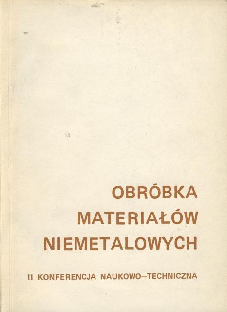 OBRÓBKA TWORZYW SZTUCZNYCH: J. Baran, J. Darlewski: Optymalizacja obróbki celuloidu frezami palcowymi ; S. Drabek, J, Koszkul: Frezowanie czołowe tarnamidu ; OBRÓBKA MATERIAŁÓW CERAMICZNYCH: J. Borkowski, S. Smardz: Termonaprężenia w elektronowiązkowej mikroobróbce materiałów ceramicznych ; K. Oczoś, S. Kulas: Stanowisko do badań szlifowalności materiałów ceramicznych ; S. Kulas: Szlifowanie gładkości ceramiki elektrotechnicznej ściernicami z węglika krzemu ; W. Szałajko: Badania procesu kłowego szlifowania izolatorowych tworzyw ceramicznych ; S. Kulas: Bezstykowy pomiar temperatury szlifowanej powierzchni przy użyciu pirometru radiacyjnego ; OBRÓBKA MATERIAŁÓW SKALNYCH: P. Lubecki: Optymalizacja procesu wiercenia obrotowo-udarowego otworów strzałowych w piaskowcu kwarcowym ; M. Pastuszko, Z. Surma: Przecinanie kamienia budowlanego narzędziami diamentowymi ; OBRÓBKA SZKŁA I DIAMENTU: K. Kubik, B. Ciałkowska, R. Presz: Przecinanie ścierne struną zbrojoną materiałów niemetalowych ; A.F. Budzyński, J. Orobiej: Docieranie otworów w diamencie ; OBRÓBKA DREWNA: J. Ciepielowski, J. Issajewicz: Badania zagęszczenia drewna topolowego metodą walcowania ; K. Woźniak: Toczenie drewna nożami grzybkowymi.