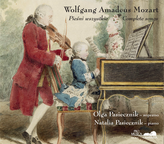 Pieśni wszystkie [Dokument dźwiękowy] = Complete songs / Wolfgang Amadeus Mozart. - Warszawa : Pro Musica Camerata, 2006. - 2 płyty CD (43 min 50 s, 52 min 40 s) : digital, stereo. ; 12 cm + Dod. druk. : 59 s.