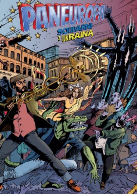 "Paneuropa. Solidarni z Ukrainą" to piąty komiks z serii wydawanej przez Przedstawicielstwo Komisji Europejskiej w Polsce. Bohaterowie Paneuropy - ci znani z poprzednich części jak czarownik Jan Twardowski, jak i ci nowi m.in. bogini światła i nadziei Zorza - jednoczą siły w starciu z zagrożeniem ze wschodu pragnącym wykorzystać tragedię uchodźców i zniszczyć jedność Europejczyków. Historia opisana w komiksie dedykowana jest obywatelom Ukrainy, zmuszonym do opuszczenia swojej ojczyzny i szukania pomocy m.in. w Polsce, oraz tym wszystkim spośród nas, którzy wyciągnęli do nich pomocną dłoń. Osoby, które znalazły schronienie w naszym kraju, często uzyskiwały pomoc od instytucji realizujących inwestycje współfinansowane przez z fundusze europejskie. [www.poland.representation.ec.europa.eu, 2023]
