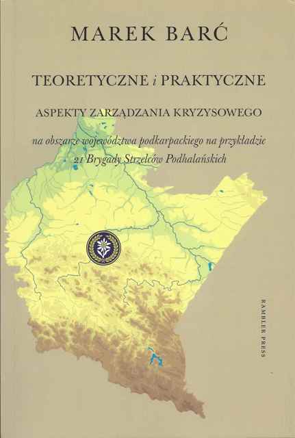Rozdział 1. TEORETYCZNE ASPEKTY ZARZĄDZANIA KRYZYSOWEGO: 1.1. Istota zarządzania kryzysowego - pojęcia podstawowe, 1.2. Definiowanie zarządzania kryzysowego, 1.3. Podstawowe zasady zarządzania kryzysowego, 1.4. Fazy zarządzania w sytuacjach kryzysowych, 1.5. Procedury zarządzania kryzysowego, 1.6. Rządowe i samorządowe zespoły zarządzania kryzysowego, 1.7. Siły Zbrojne w sytuacjach kryzysowych, 1.8. Usytuowanie SZ RP w systemie zarządzania kryzysowego kraju, 1.9. Wnioski ; Rozdział 2. UWARUNKOWANIA FIZYCZNO-GEOGRAFICZNE ORAZ SYSTEM ZARZĄDZANIA KRYZYSOWEGO WOJEWÓDZTWA PODKARPACKIEGO: 2.1. Charakterystyka fizyczno-geograficzna województwa podkarpackiego: 2.1.1. Rzeźba, 2.1.2. Drogi i linie kolejowe, 2.1.3. Rzeki i lasy, 2.1.4. Gospodarka, 2.1.5. Budowa geologiczna, gleby i surowce mineralne, 2.1.6. Klimat, 2.1.7. Ludność, 2.2. Rządowa administracja lokalna w systemie zarządzania kryzysowego w województwie podkarpackim, 2.3. Zadania Policji w systemie reagowania kryzysowego na obszarze województwa podkarpackiego, 2.4. Zadania Państwowej Straży Pożarnej w systemie reagowania kryzysowego na obszarze województwa podkarpackiego, 2.5. Zadania Bieszczadzkiego Oddziału Straży Granicznej w systemie reagowania kryzysowego na obszarze województwa podkarpackiego, 2.6. Zadania SZ RP w systemie reagowania kryzysowego na obszarze województwa podkarpackiego, 2.7. Wnioski ; Rozdział 3. ZAGROŻENIA I RYZYKO ICH WYSTĄPIENIA NA OBSZARZE WOJEWÓDZTWA PODKARPACKIEGO: 3.1. Terroryzm, 3.2. Klęski żywiołowe, 3.3. Awarie techniczne, 3.4. Wnioski ; Rozdział 4. 21. BRYGADA STRZELCÓW PODHALAŃSKICH W SYTUACJACH KRYZYSOWYCH NA OBSZARZE WOJEWÓDZTWA PODKARPACKIEGO: 4.1. Dotychczasowe doświadczenia 21. Brygady Strzelców Podhalańskich w dziedzinie zarządzania kryzysowego, 4.2. Siły i środki 21. Brygady Strzelców Podhalańskich wydzielane do zadań kryzysowych, 4.3. Zadania wydzielonych sił i środków 21. Brygady Strzelców Podhalańskich w sytuacjach kryzysowych na obszarze województwa podkarpackiego: 4.3.1. [...] do ewakuacji ludności i mienia oraz ochrony terenu podczas zagrożeń niemilitarnych, 4.3.2. [...] w działaniach antyterrorystycznych i utrzymania porządku publicznego, 4.3.3. [...] w izolowaniu zagrożonego obszaru oraz w działaniach zabezpieczających, ratowniczych i ewakuacyjnych przy zagrożonych obiektach budowlanych i zabytkach, 4.3.4. [...] w akcjach poszukiwawczo-ratowniczych, 4.3.5. [...] w sytuacjach wymagających użycia specjalistycznego sprzętu, a także oczyszczania terenu z przedmiotów wybuchowych i niebezpiecznych, pochodzenia wojskowego, 4.3.6. [...] w likwidacji skażeń chemicznych i promieniotwórczych, 4.3.7. [...] do działań przeciwepidemicznych, 4.3.8. Wyniki badań dotyczące struktury etatowo-funkcjonalnej Dowództwa 21. BSPh (GO) oraz batalionów i dywizjonów (ZO) w działaniach w sytuacjach kryzysowych, 4.4. Wnioski.