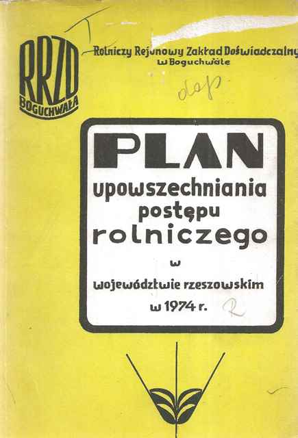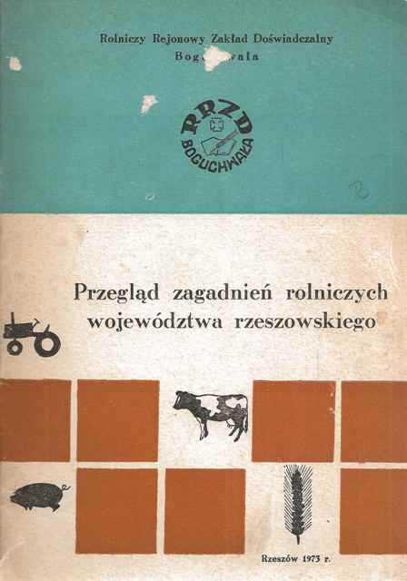 Aktualne zadania w rolnictwie w okresie jesienno-zimowym ; Funkcja Rolniczego Rejonowego Zakładu Doświadczalnego w Boguchwale w procesie wdrażania postępu do praktyki rolniczej ; Czynniki prowadzące do uzyskania wysokich plonów zbóż w wojew. rzeszowskim ; Organizacja zespołowego wapnowania gleb i nawożenia kompleksów trwałych użytków zielonych w pow. niżańskim.