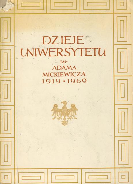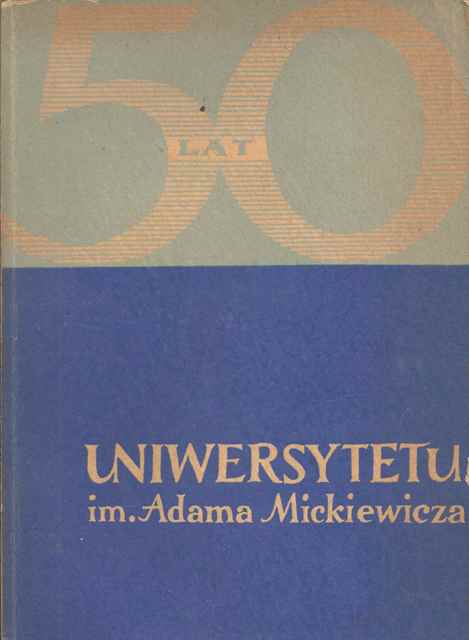 50 lat Uniwersytetu im. Adama Mickiewicza : 1919-1969 / [redaktor tomu Zdzisław Grot]. - Poznań : Uniwersytet im. Adama Mickiewicza, 1971. - 446, [1] strona, [1] karta tablic : ilustracje, fotografie, mapa, portrety ; 23 cm.