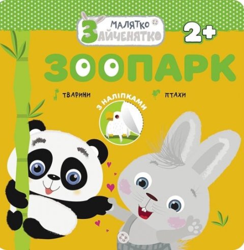Головний герой книжки, веселе та допитливе зайченятко, запрошує малюків у веселу подорож до зоопарку! Разом вони вивчать назви тварин, розфарбують малюнки і виконають цікаві завдання з наліпками. [Vidavnictvo ASSA, 2021]
