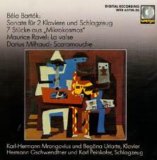 Zawiera: Sonate für 2 Klaviere und Schlagzeug Sz 110 (1938) ; 7 Stücke aus Mikrokosmos Sz 107 (1926-1937) Fassung für 2 Klaviere vom Komponisten ( Heft IV Nr.113 Bulgarischer Rhythmus, Heft III Nr.69 Akkord- und Trillerstudie, Heft V Nr.135 Perpetuum mobile, Heft V Nr.123 Kleiner Kanon und Umkehrung, Heft V Nr.127 Neues ungarisches Volkslied, Heft VI Nr.145 Chromatische Invention, Heft VI Nr.146 Ostinato) / Béla Bartók. La valse, Poéme choréographique(1920) Fassung für 2 Klaviere. Scaramouche, Suite für 2 Klaviere(1937).