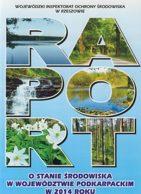1. WOJEWÓDZTWO PODKARPACKIE W LICZBACH ; 2. OCHRONA POWIETRZA: 2.1. Emisja zanieczyszczeń do powietrza, 2.2. Monitoring i ocena jakości powietrza, 2.3. Jakość powietrza na obszarze podkarpackich uzdrowisk, 2.4. Monitoring chemizmu opadów atmosferycznych i ocena depozycji zanieczyszczeń do podłoża, 2.5. Działania w zakresie ochrony powietrza realizowane przez samorząd województwa podkarpackiego ; 3. OCHRONA WÓD: 3.1. Presje w środowisku wodnym, 3.2. Monitoring i ocena jakości wód powierzchniowych, 3.3. Główne Zbiorniki Wód Podziemnych na obszarze województwa, 3.4. Monitoring i ocena jakości wód podziemnych, 3.5. Wyniki kontroli oczyszczalni ścieków objętych Krajowym Programem Oczyszczania Ścieków Komunalnych w aglomeracjach, 3.6. Wojewódzki cykl kontrolny "Ochrona wód Zbiornika Solina przed zanieczyszczeniami" - lata 2013-2014 ; 4. OCHRONA POWIERZCHNI ZIEMI ; 5. OCHRONA PRZED HAŁASEM: 5.1. Emisja hałasu do środowiska, 5.2. Monitoring i ocena klimatu akustycznego: Hałas instalacyjny, Hałas komunikacyjny, 5.3. Programy ochrony środowiska przed hałasem ; 6. OCHRONA PRZED POLAMI ELEKTROMAGNETYCZNYMI: 6.1. Źródła promieniowania elektromagnetycznego, 6.2. Monitoring i ocena poziomów pól elektromagnetycznych ; 7. OCHRONA ZWIERZĄT ORAZ ROŚLIN: 7.1. Działania na rzecz ochrony przyrody w województwie realizowane przez Regionalną Dyrekcję Ochrony Środowiska w Rzeszowie w latach 2009-2014: Zakres działalności Regionalnej Dyrekcji Ochrony Środowiska w Rzeszowie (RDOŚ), Obszary chronione, Ochrona gatunkowa, Działalność edukacyjna ; 8. PRZECIWDZIAŁANIE ZANIECZYSZCZENIOM: 8.1. Odpady, 8.2. Regiony Gospodarki Odpadami w województwie podkarpackim, 8.3. Regionalne Instalacje Przetwarzania Odpadów Komunalnych (RIPOK), 8.4. Unieszkodliwiania odpadów poprzez składowanie, 8.5. Wyniki kontroli Regionalnych Instalacji Przetwarzania Odpadów Komunalnych, 8.6. Wyniki kontroli przestrzegania przepisów dotyczących komunalnych osadów ściekowych ; 9. INSPEKCJA OCHRONY ŚRODOWISKA W WOJEWÓDZTWIE: 9.1. Realizacja zadań kontrolnych, 9.2. Poważne awarie, 9.3. Państwowy monitoring środowiska oraz rozpowszechnianie informacji, 9.4. Stan bazy laboratoryjnej, 9.5. Współpraca międzynarodowa.