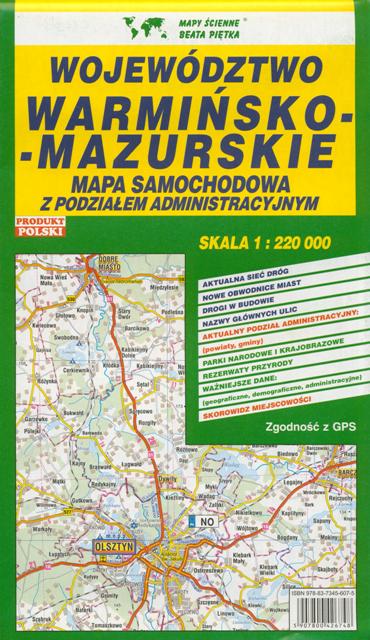 Mapa poboczna: Województwo warmińsko-mazurskie [podział na powiaty], 12x20 cm.