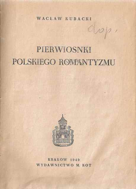 Pierwiosnki polskiego romantyzmu ; Ranieri Calzabigi pośród lektur filomackich ; Zima miejska ; Oda do młodości ; Powrót taty ; Hymn na dzień zwiastowania Najśw. Marii Panny ; Absolutum Mickiewicza ; Etyka i poetyka.