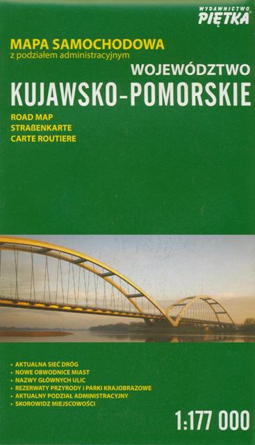 Województwo kujawsko-pomorskie : mapa samochodowa z podziałem administracyjnym : 1:177 000 / Wydawnictwo Piętka. - Katowice : Wydawnictwo Piętka, [2016]. - 1 mapa : na obu stronach arkusza, wielobarwna ; arkusz 68x96 cm, złożony 24x14 cm.