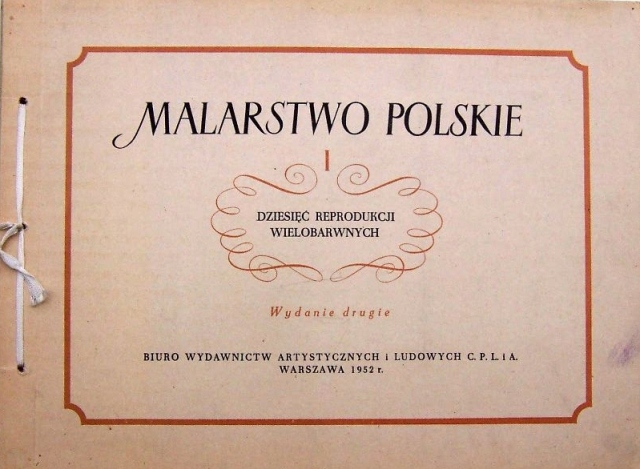 Malarstwo polskie : dziesięć reprodukcji wielobarwnych. I. - Wydanie drugie. - Warszawa : Biuro Wydawnictw Artystycznych i Ludowych C. P. L. i A., 1952. - Teka (10 kart reprodukcji) ; 30 cm + Dodatek drukowany: [4] strony.