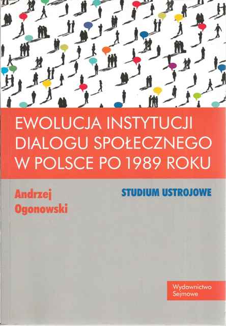 R. I. KONSTYTUCJONALIZACJA DIALOGU SPOŁECZNEGO W POLSCE: 1. Pojęcie dialogu społecznego: Dialog społeczny w Konstytucji RP ; Odwołania do dialogu społecznego w języku prawnym i języku prawniczym ; Dialog społeczny w prawodawstwie UE ; Dialog społeczny w naukach społecznych ; Dialog społeczny sensu largo a dialog społeczny sensu stricte ; Formy i typologie dialogu społecznego ; 2. Oddziaływanie dialogu społecznego na wybrane normy Konstytucji RP: Dialog społeczny a zasada demokratycznego państwa prawnego ; Dialog społeczny a zasada państwa urzeczywistniającego zasady sprawiedliwości społecznej ; Dialog społeczny a zasada pomocniczości ; Dialog społeczny a konstytucyjne prawo do rokowań ; 3. Rola dialogu społecznego w funkcjonowaniu ustroju gospodarczego RP: Społeczna gospodarka rynkowa jako podstawa ustroju gospodarczego RP ; Solidarność, dialog i współpraca partnerów społecznych jako socjalny komponent społecznej gospodarki rynkowej ; Znaczenie pojęcia "partnerzy społeczni" ; "Dialog i współpraca" partnerów społecznych jako metoda kształtowania społecznej gospodarki rynkowej ; R. II. GENEZA TRÓJSTRONNEJ KOMISJI DO SPRAW SPOŁECZNO-GOSPODARCZYCH: 1. Instytucje dialogu społecznego w Polsce przed 1989 r. ; 2. Pakt o przedsiębiorstwie państwowym w trakcie przekształcenia jako źródło powołania instytucji dialogu społecznego w Polsce ; 3. Działanie Trójstronnej Komisji do Spraw Społeczno-Gospodarczych w latach 1994-2001 ; 4. Dialog społeczny i Trójstronna Komisja do Spraw Społeczno-Gospodarczych w projektach konstytucyjnych ; 5. Dialog społeczny i Trójstronna Komisja do Spraw Społeczno-Gospodarczych w pracach Komisji Konstytucyjnej Zgromadzenia Narodowego: Prace nad konstytucyjną regulacją ustroju gospodarczego ; Prace nad konstytucyjną regulacją praw i wolności socjalnych ; Prace nad konstytucyjną regulacją procedury budżetowej ; Zamieszczenie odwołania do dialogu społecznego w preambule Konstytucji RP ; 6. Uchwalenie ustawowej regulacji dotyczącej Trójstronnej Komisji do Spraw Społeczno-Gospodarczych ; R. III. PRAWNA REGULACJA TRÓJSTRONNEJ KOMISJI DO SPRAW SPOŁECZNO-GOSPODARCZYCH WIATACH 2001-2015: 1. Skład Trójstronnej Komisji do Spraw Społeczno-Gospodarczych ; 2. Organizacja i tryb pracy Trójstronnej Komisji do Spraw Społeczno-Gospodarczych: Przewodniczący KT ; Prezydium KT ; Posiedzenia plenarne KT ; Zespoły problemowe KT ; Sekretariat KT ; 3. Kompetencje Trójstronnej Komisji do Spraw Społeczno-Gospodarczych: Kompetencja ogólna KT ; Kompetencje szczegółowe KT ; Kompetencje stron KT ; 4. Usytuowanie Trójstronnej Komisji do Spraw Społeczno-Gospodarczych w systemie organów władzy państwowej: KT a władza ustawodawcza ; KT a władza wykonawcza ; KT a władza sądownicza ; 5. Funkcje Trójstronnej Komisji do Spraw Społeczno-Gospodarczych ; 6. Przyczyny rozwiązania Trójstronnej Komisji do Spraw Społeczno-Gospodarczych ; R. IV. RADA DIALOGU SPOŁECZNEGO JAKO PRAWNY NASTĘPCA TRÓJSTRONNEJ KOMISJI DO SPRAW SPOŁECZNO-GOSPODARCZYCH: 1. Powołanie Rady Dialogu Społecznego ; 2. Skład Rady Dialogu Społecznego ; 3. Organizacja i tryb działania Rady Dialogu Społecznego ; 4. Funkcje Rady Dialogu Społecznego: Kompetencje RDS ; Kompetencje stron RDS.