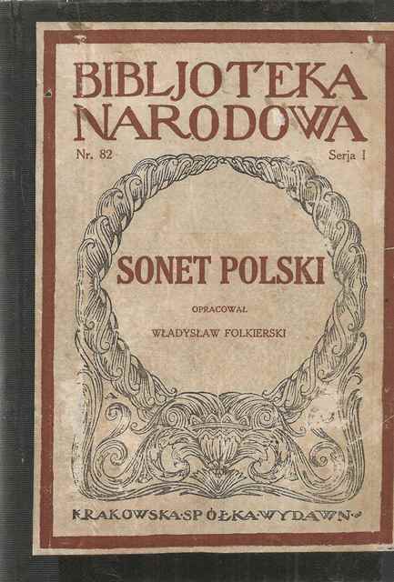 SONET POLSKI: J. Kochanowski ; M. Sęp Szarzyński ; S. Grabowiecki ; S. S. Jagodyński ; A. Morsztyn ; St. H. Lubomirski ; J. Przybylski ; S. Goszczyński ; A. Mickiewicz "Sonety Krymskie" ; A. E. Odyniec ; J. N. Kamiński ; J. Słowacki ; St. Garczyński ; J. H. Kajsiewicz ; K. Gaszyński ; T. A. Olizarowski ; B. Zaleski ; Z. Krasiński ; Wł. Syrokomla ; L. Sowiski ; M. Romanowski ; Al. Fredro ; T. Lenartowicz ; A. Asnyk ; Fr. Nowicki ; F. Faleński ; M. Konopnicka ; J. Kasprowicz ; Z. Przesmycki (Miriam) ; K. Tetmajer St. i W. Korab Brzozowscy ; St. Brzozowski ; W. Brzozowski ; H. d'Abancourt ; K. Zawistowska ; GRUPA "ŻYCIA", "CHIMERY" i "MUSEJONU": Wł. Sterling ; Wł. Orkan ; W. Perzyński ; J. Lemański ; J. Ruffer ; St. Wyrzykowski ; H. Zbierzchowski ; W. Berent ; L. Eminowicz ; E. Zegadłowicz ; L. Rydel ; T. Miciński ; J. Żuławski ; L. Staff ; J. Jankowski ; Z. l. Zaleski ; SONETY O SONECIE: A. E. Odyniec ; K. Gaszyński ; K. Tetmajer ; Z. Przesmycki (Miriam) ; J. Żuławski ; G. Daniłowski ; St. P. Koczorowski.
