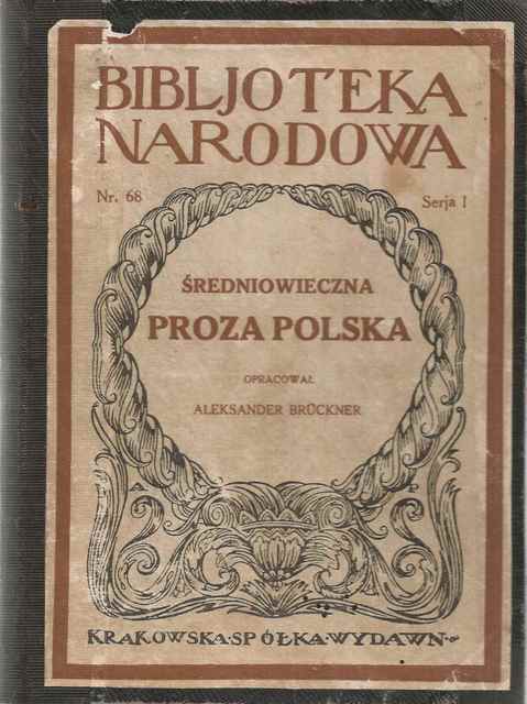 Polska proza średniowieczna / wybrał i objaśnił Aleksander Brückner. - Kraków : nakładem Krakowskiej Spółki Wydawniczej, [1923] (Kraków : Drukarnia Literacka, 1923). - 244, [2] strony ; 18 cm.