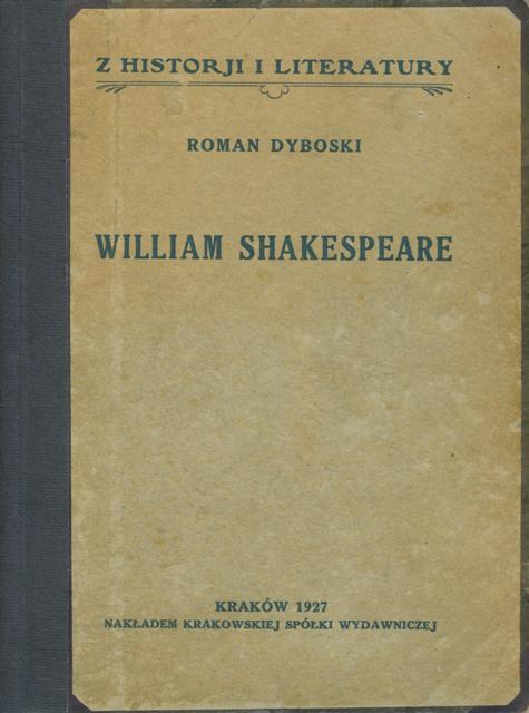 William Shakespeare / Roman Dyboski. - Kraków : nakładem Krakowskiej Spółki Wydawniczej, 1927 (Kraków : Druk W. L. Anczyca i Spółki). - VII, 352 strony ; 20 cm.