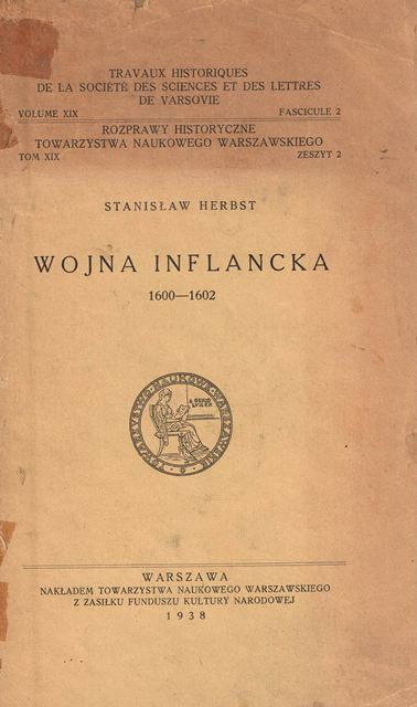 Wojna inflancka 1600-1602 / Stanisław Herbst. - Warszawa : nakładem Towarzystwa Naukowego Warszawskiego, 1938. - [4], X, 194 strony, [1] karta tablic złożona : mapy ; 25 cm.